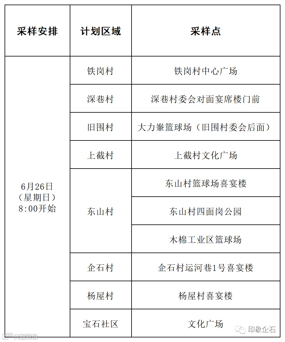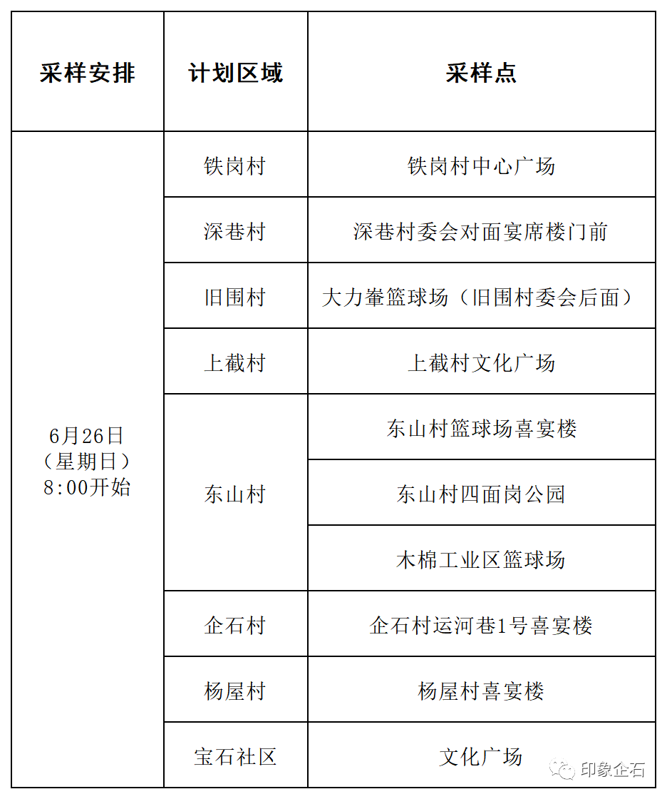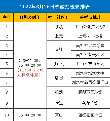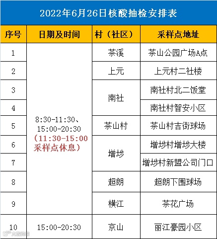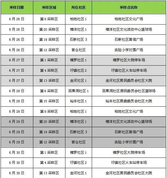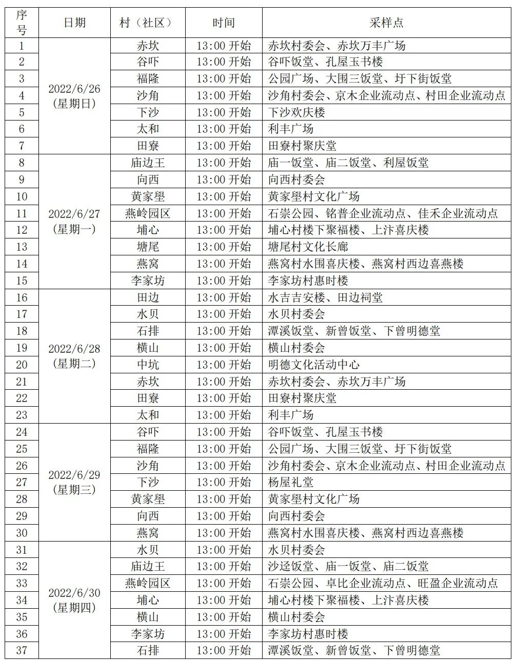 2022年6月26日8:30起(以采样点具体时间安排为准)