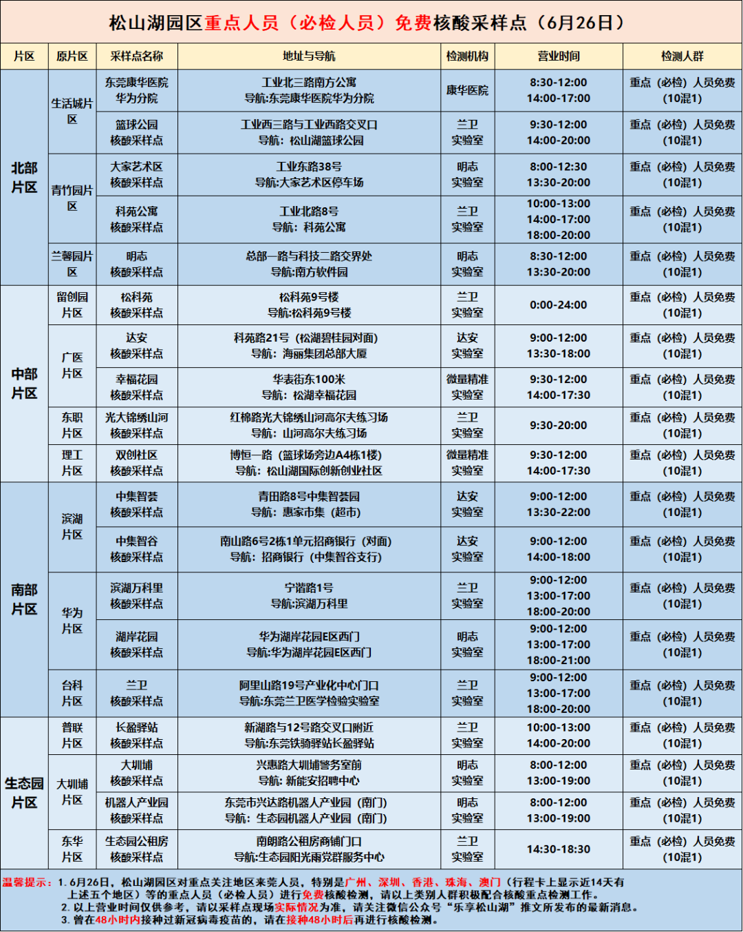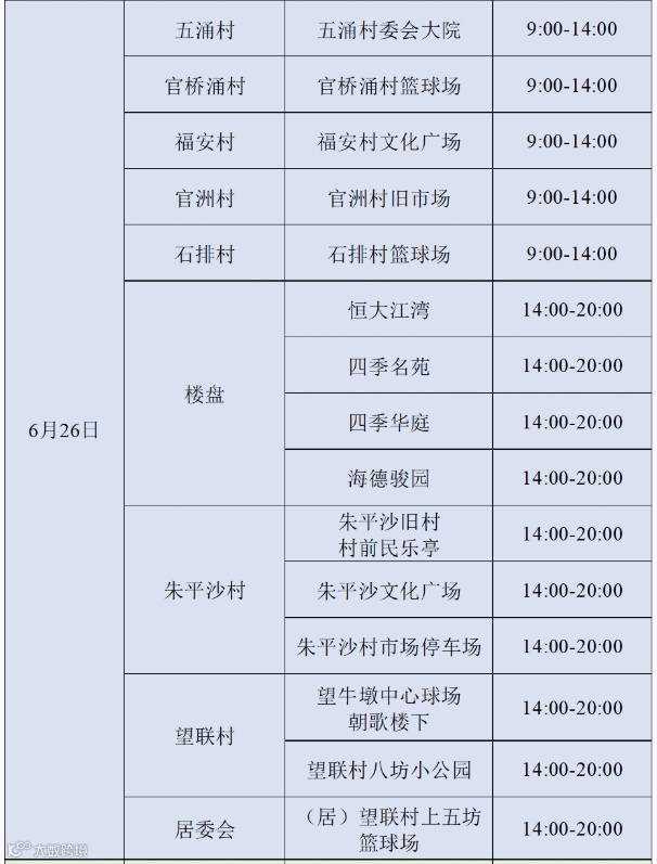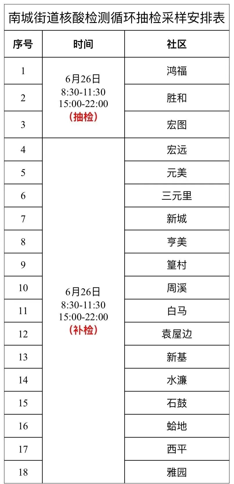 6月26日横沥区域核酸抽检时段为14:00-22:00,其他事项不变,具体如下:
