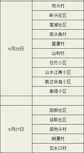 石龙镇于6月25日至6月30日,对全镇重点人群核酸检测工作进行调整。