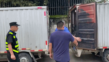 夕阳西下,在微弱的灯光中,嫌疑车辆“如约而至”。一辆车厢封闭严实的银色车辆快速经过,该车辆“成功”地引起了执法人员的注意,根据多年的执法经验,执法人员马上锁定跟踪,最终发现嫌疑车辆在石兴市场附近与另一辆小四轮货车汇合停车过气,执法人员迅速驾车堵住这两台目标车的退路。