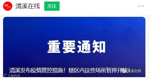 19日,清溪镇新型冠状病毒肺炎疫情防控指挥部办公室发布关于进一步加强疫情防控工作的通告。