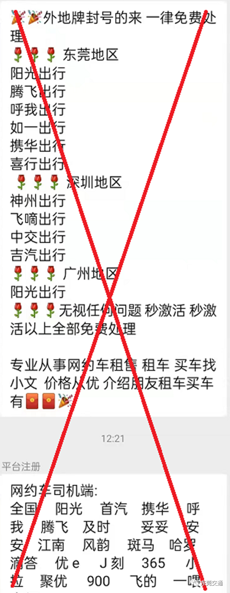 若平台未取得许可或经营许可资质失效,请勿在相关平台继续从事网约车经营服务,否则将违反《网络预约出租汽车经营服务管理暂行办法》第二十八条和《东莞市网络预约出租汽车经营服务管理实施细则(暂行)》第三十条,交通部门将纳入重点监管。