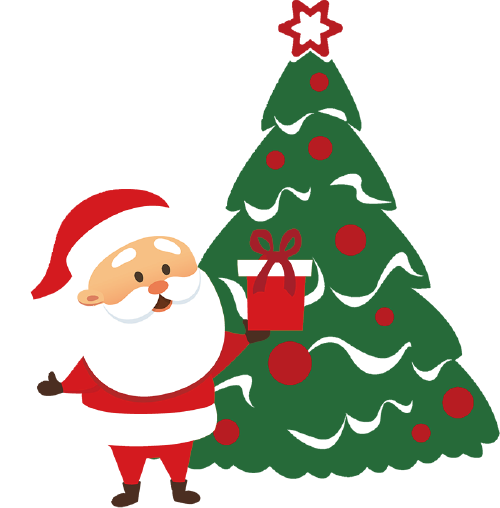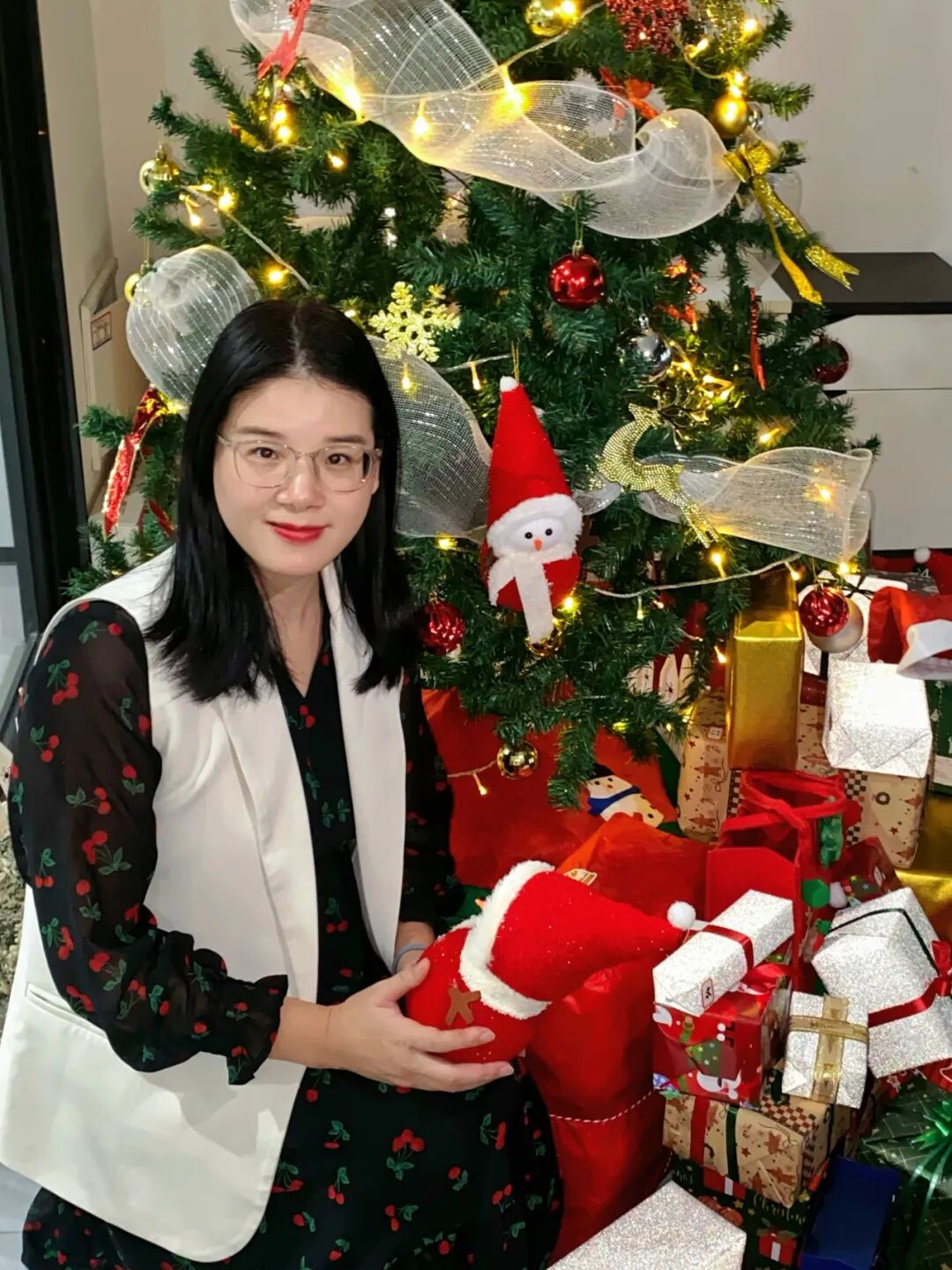 一棵挂满彩灯与铃铛的圣诞树矗立在中央🎄