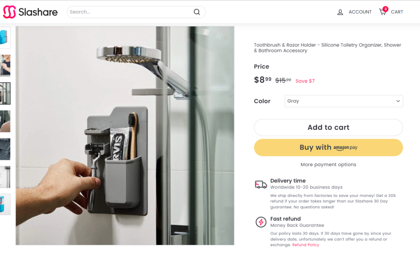在网站上购物时,遇到了看好的产品,点击右侧的“Add to cart”,这件商品就会加入购物车,你可以在右上角的小车图标中找到它: