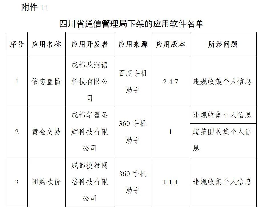 ,所涉问题包括超范围收集个人信息及App强制、频繁、过度索取权限等。