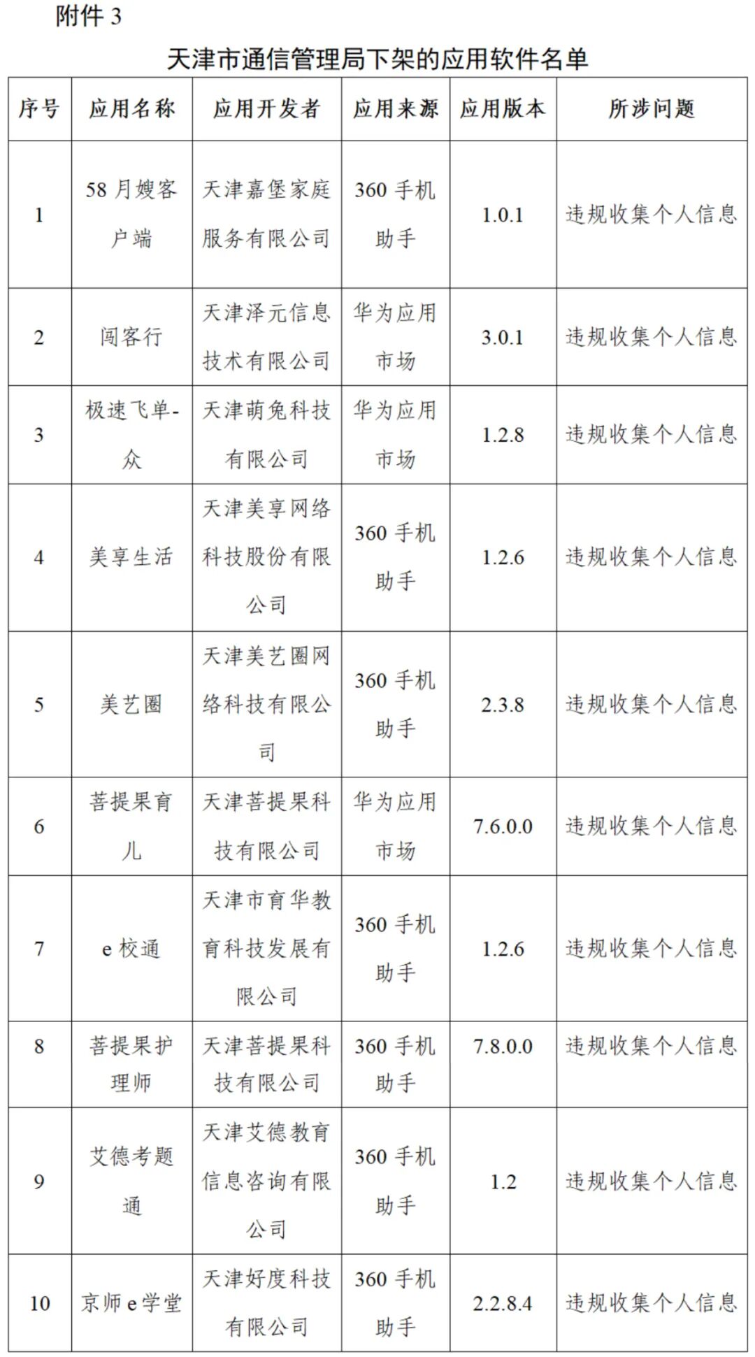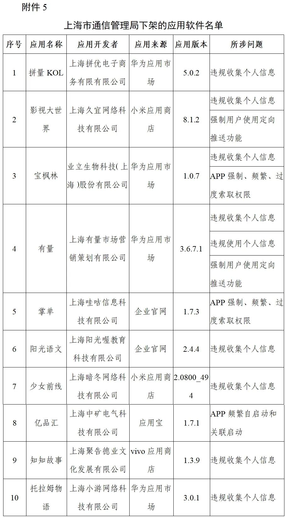 关于下架侵害用户权益App名单的通报