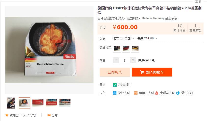 享誉世界的菲仕乐的这款不粘涂层平底煎锅是德国电视台【名品厨艺】栏目的指定厨具。国内专柜价¥1180.