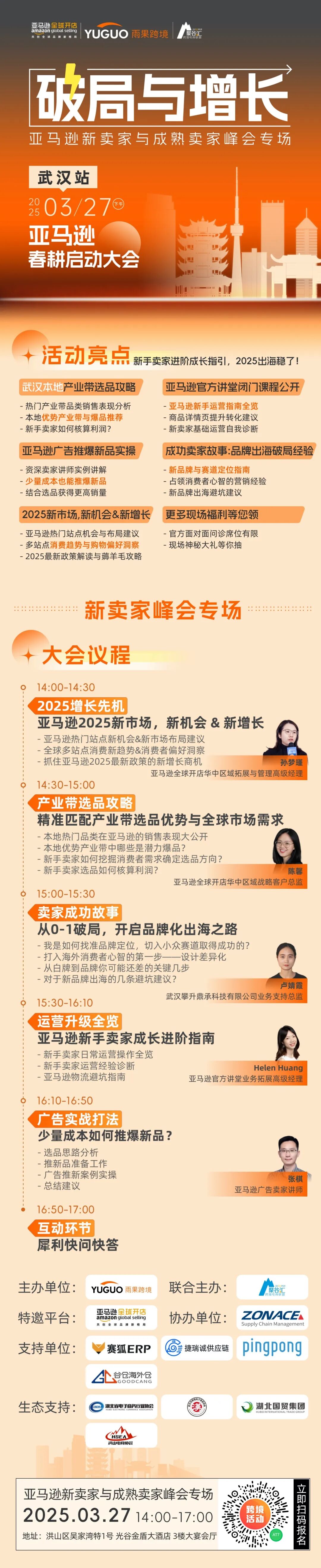 更多活动详情请点击链接查看,现在就加入我们吧!在这场汇聚了亚马逊官方团队和众多成功卖家的峰会上,你不仅能获取最新的市场趋势、实用的选品指南,还能学习到从零开始构建品牌的宝贵经验。不要让这次机会溜走,让我们一起在
