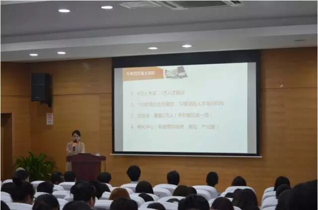 随后阿里巴巴“百城千校、百万英才”项目华东区负责人周俊女士首先介绍了“阿里巴巴百城千校 百万英才”项目为广大学生提供的福利,她强调,在现如今“一环一圈、一带一路”的行业背景下,通过与跨境电商优质服务商南京瀚海以及高校的紧密结合,加强跨境电商平台以及实际化的操作,强化职业技能素养,真正实现人才培育目标,共育百万英才,真正意义上解决了学生就业难的问题。