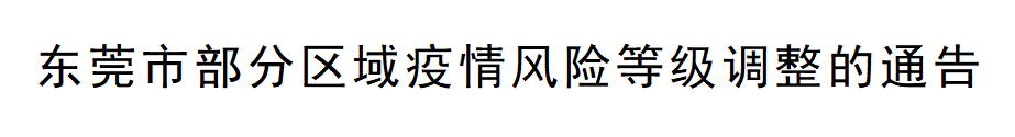 根据国家和省关于应对新冠肺炎疫情分区分级防控的工作要求,经东莞市新冠肺炎防控指挥部同意,自2021年12月30日起,东莞市大朗镇水平村红荔西区金宝公寓、蔡边村九墩区112号由中风险地区调整为低风险地区,其他地区风险等级不变。