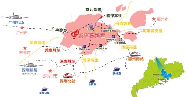 仲恺高新区南靠深圳、西接东莞,毗邻广州、香港,处于粤港澳大湾区核心地带。