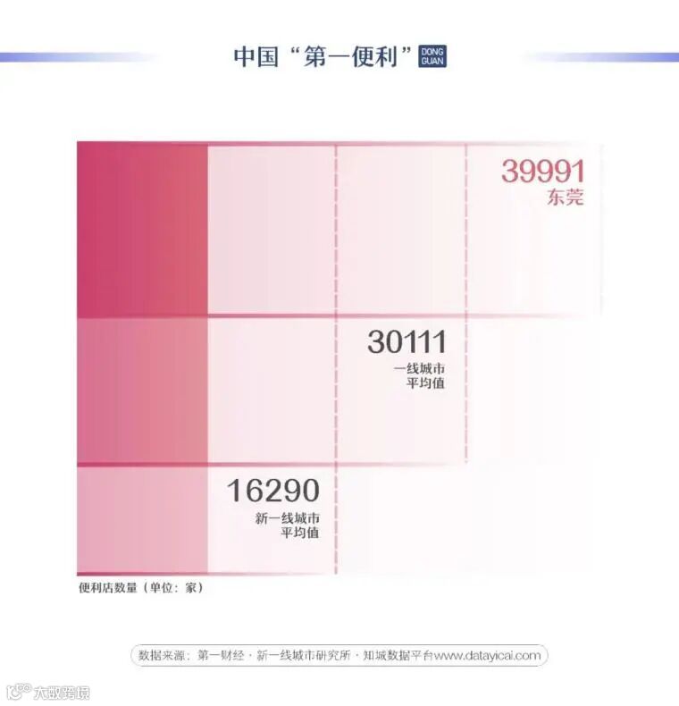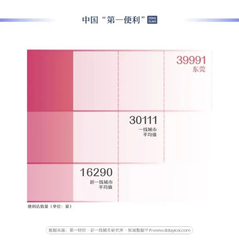 另一个有意思的数据是,全国拥有最多便利店的城市,是东莞。截至2021年3月,包含连锁品牌便利店、外资便利店、非连锁非品牌的夫妻老婆店在内的便利店,东莞一共拥有39991家,全国数量第一。