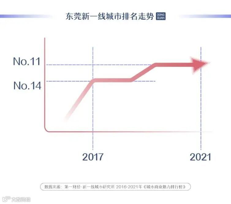 ▲《2021城市商业魅力排行榜》,在15个新一线城市中,东莞排名第11