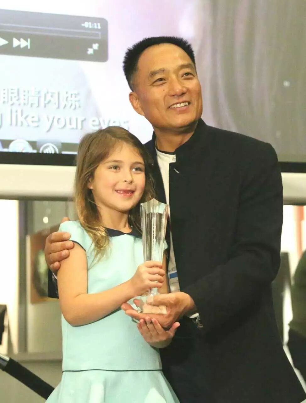 王汉光董事长为中美混血童星Kayla Bohan颁奖。