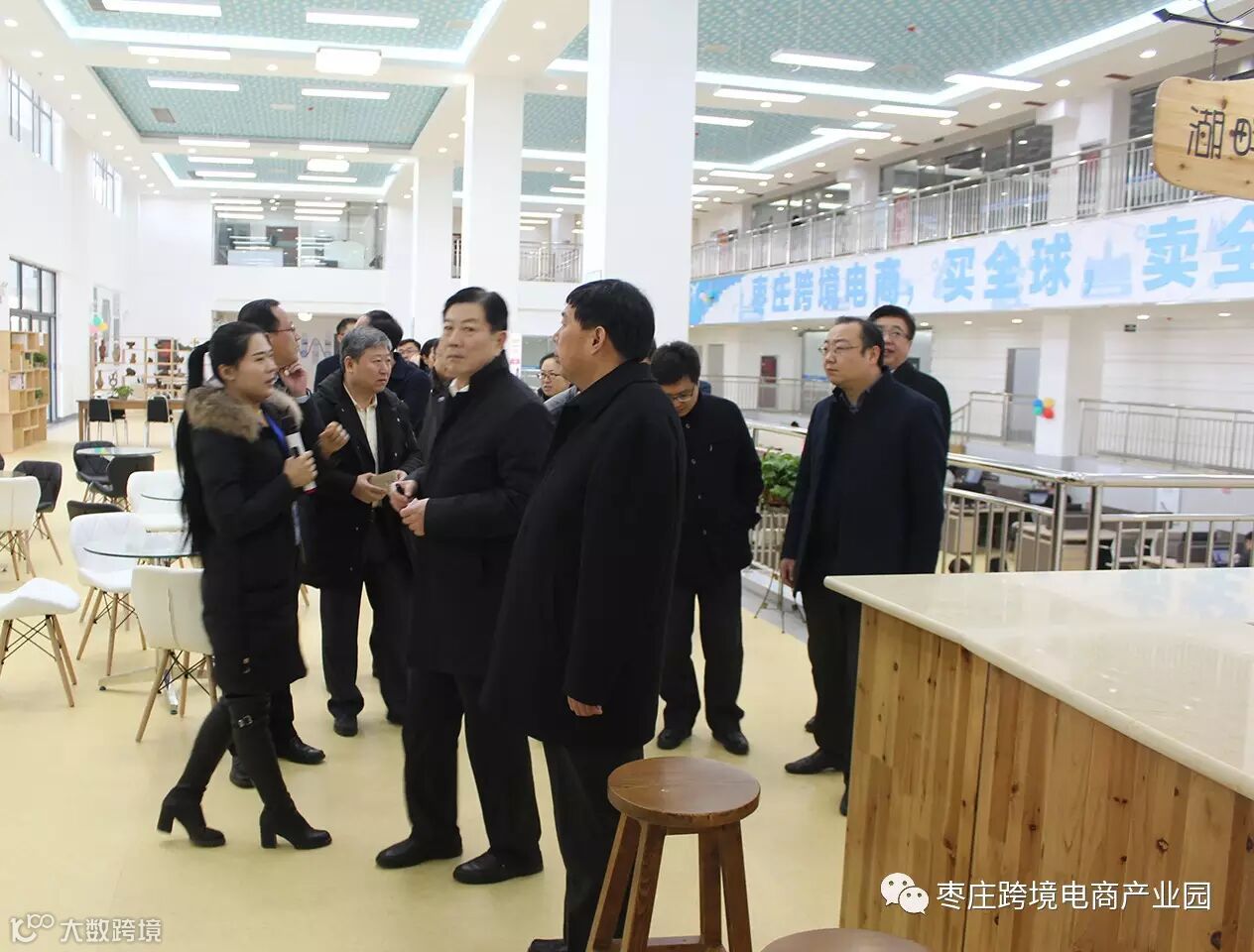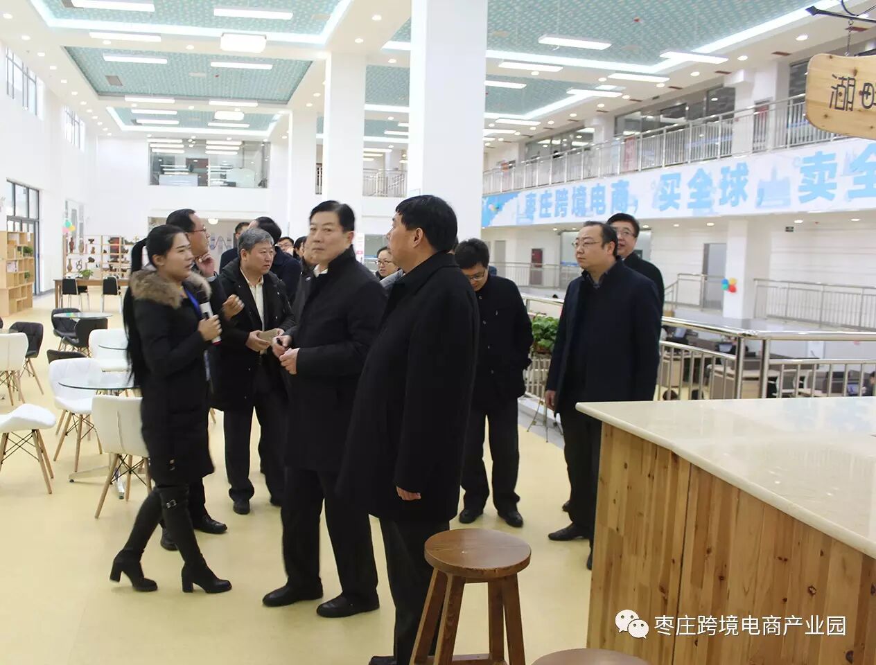 在陪同视察过程中,枣庄跨境电商产业园行政总监李树瑞向各位领导详细介绍了园区功能和发展现状,并向领导介绍了园区的发展特色。