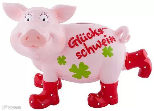 野猪(Eber)是日耳曼众神的神兽。北欧爱与美之女神芙蕾雅(Freya)在日耳曼地区有一个别名为Syr,是Sau(母猪)的意思,此外,猪还是祭祀希腊神话中丰饶女神德墨忒尔(Demeter)的牺牲。在欧洲文化中,母猪还曾是富裕之象征,而“幸运之猪”很早就被视作繁育之兆和吉祥之物。据民间说法,新年的时候,人们要吃猪鼻子,或者至少要吃猪肉,以求来年之好运。毕竟在古时候,猪肉还是比较稀缺的,不是随便就能吃得到。所以谁要是“有猪”(Schwein haben)的话,就被视作富裕而幸运了。