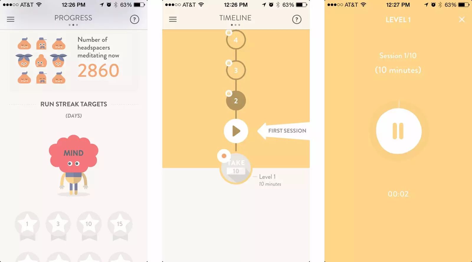 The app I’m introducing today is called Headspace, and it’s sole purpose for existing in this world (or in your phone) is to help you improve your mental health through meditation. Headspace is a immensely well designed, elegantly gamified meditation regimen that’s designed to guide you through the process of attaining and sustaining a healthier, clearer, and more peaceful mental state. Think of it as massage therapy for your brain.
