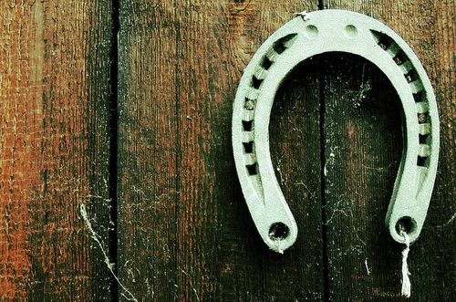 马蹄铁被认为是幸运之物。首先,它的形状像一个上升的月亮;另一种解释可以追溯到圣邓斯坦(St. Dunstan)的故事。圣邓斯坦是一个出色的马掌匠,相传他曾在马蹄铁上施加了魔力,并将其套在了魔鬼的脚上,魔鬼求饶,许诺今后再也不会踏入有马蹄铁的房子,因此人们认为马蹄铁就有避邪的作用。这一说法在德国、尤其是在以路德教为主的北方教区尤其流行。