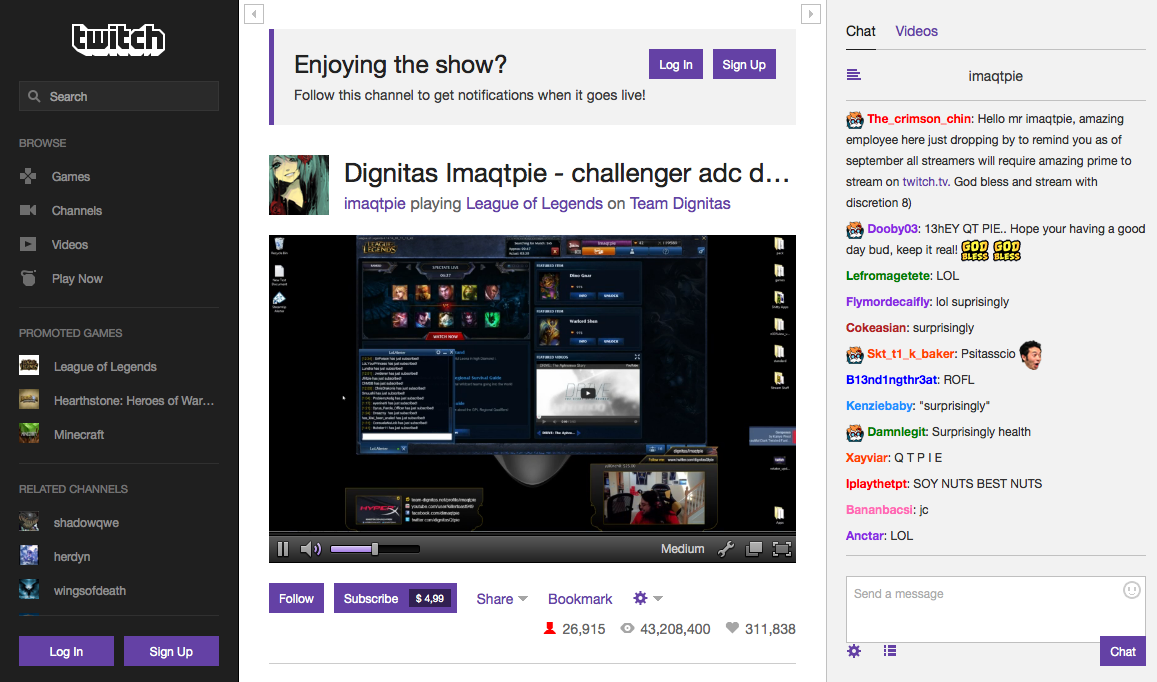 Since its official launch in June 2011, Twitch has come a long way to becoming the hugely popular unicorn it is today (Twitch was acquired by Amazon for $970M in September 2014). On top of perfecting all the technology required to deliver a seamless live streaming experience for both the gamer and his/her multitude of viewers, Twitch had to figure out a way to get people interested in watching other people play games. On that front, a lot of things had to fall perfectly into place for Twitch to be successful and luckily for Twitch, just about everything did.