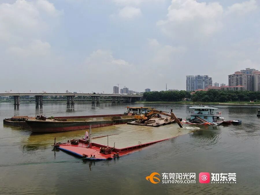 7月28日约15时,在石龙东江河段石龙体育公园对出水域,一艘满载碎石的船舶怀疑因水流及操作原因,驶离航道后接触暗礁导致船头漏水,最终在石龙东岸大桥上游约200米处沉没。今天(7月29日)上午,救援工作仍在持续进行。