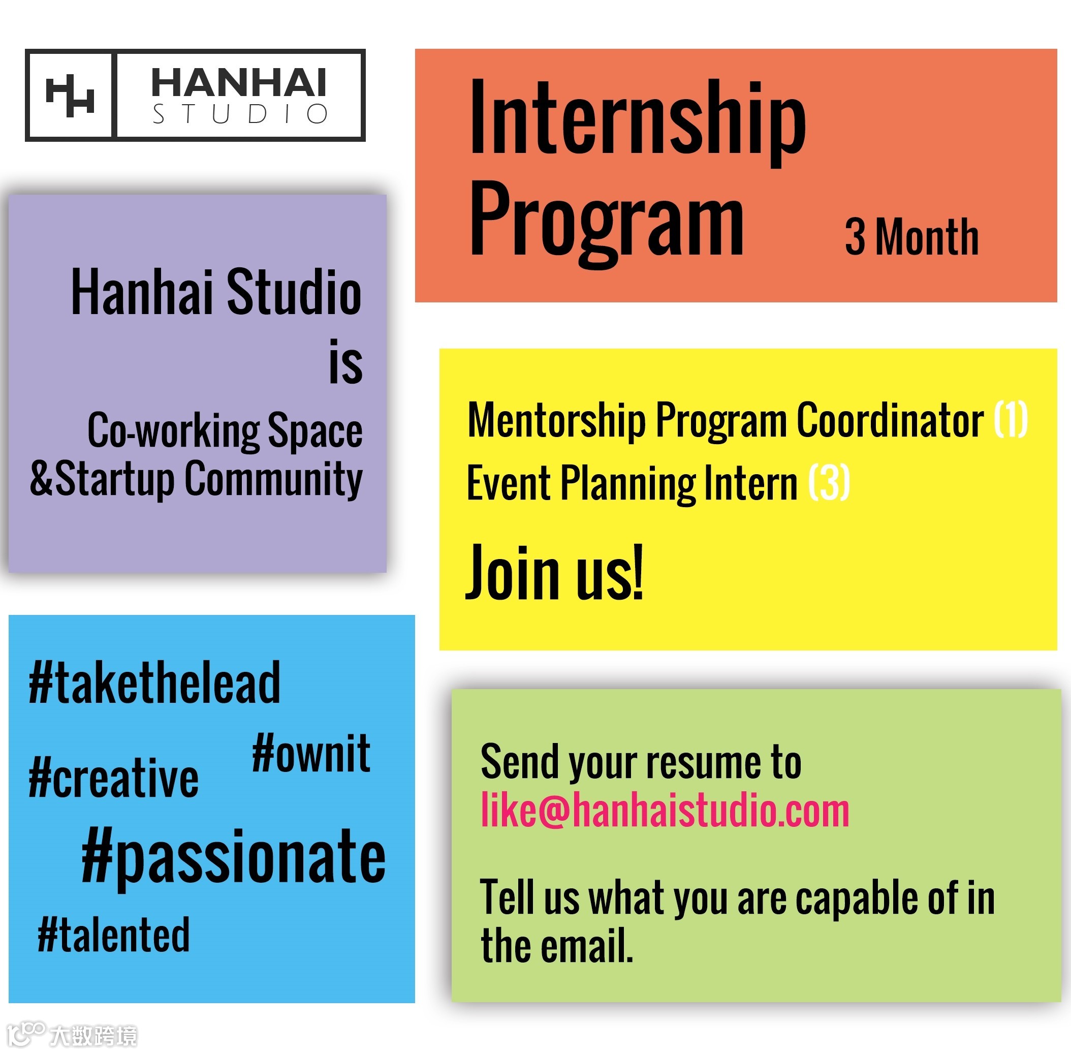 Hanhai Studio现招募实习生4位,实习期为三个月,每周两到三天的工作时间。