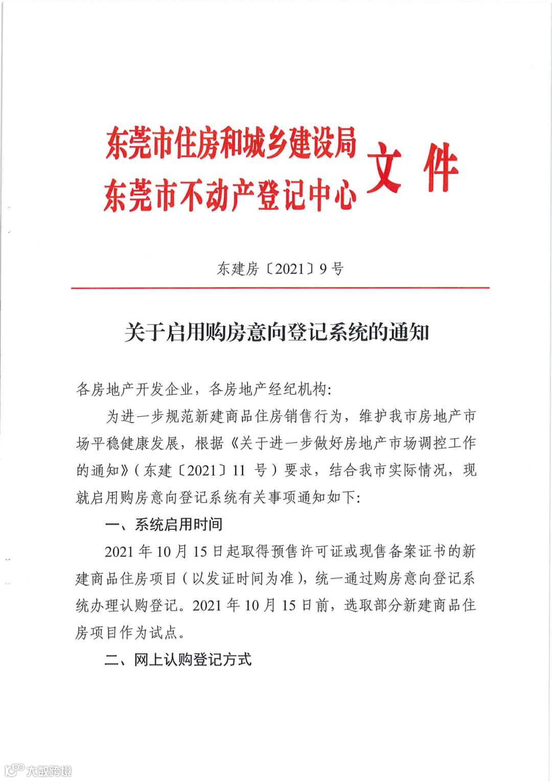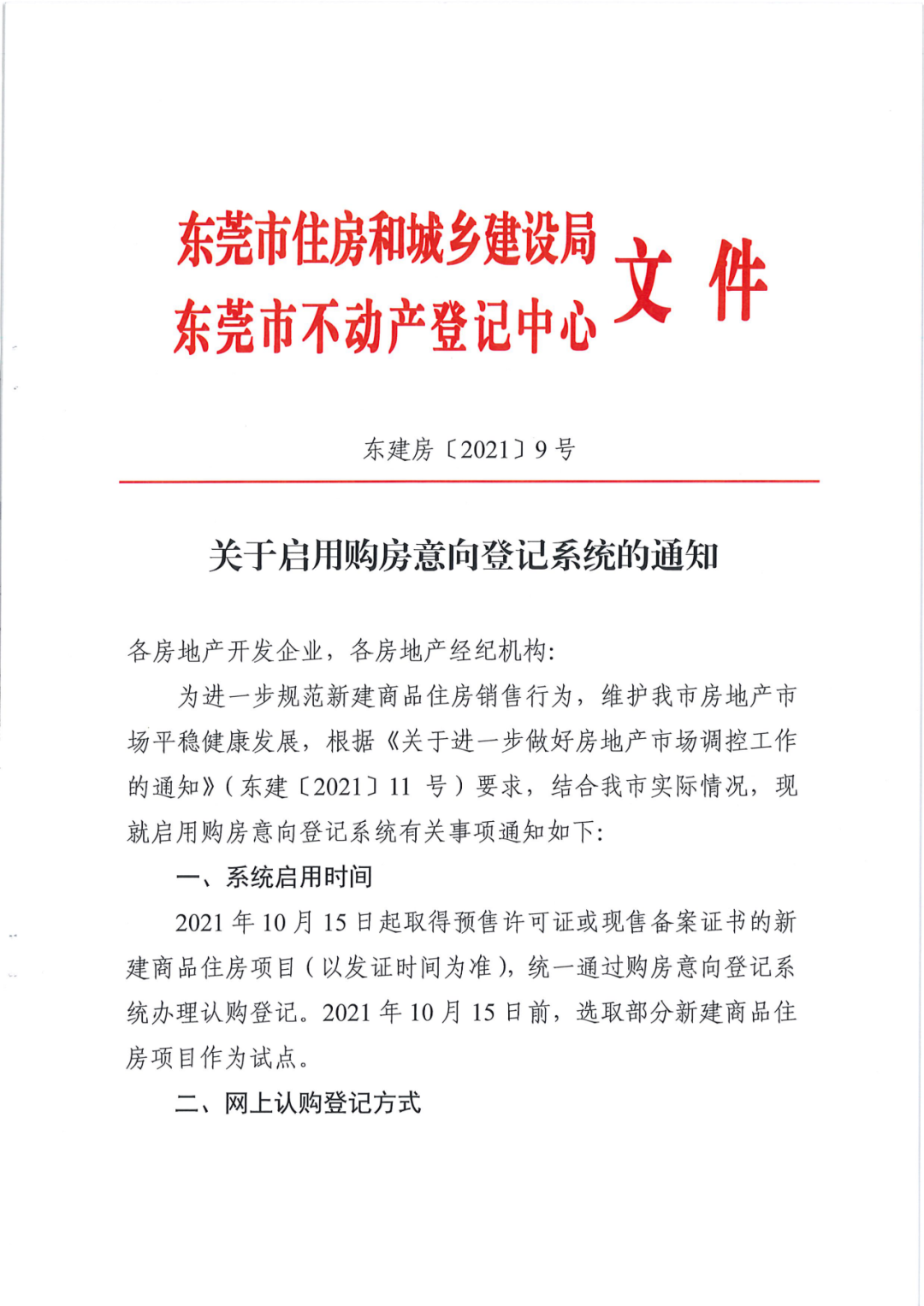 关于启用购房意向登记系统的通知(东建房〔2021〕9号)