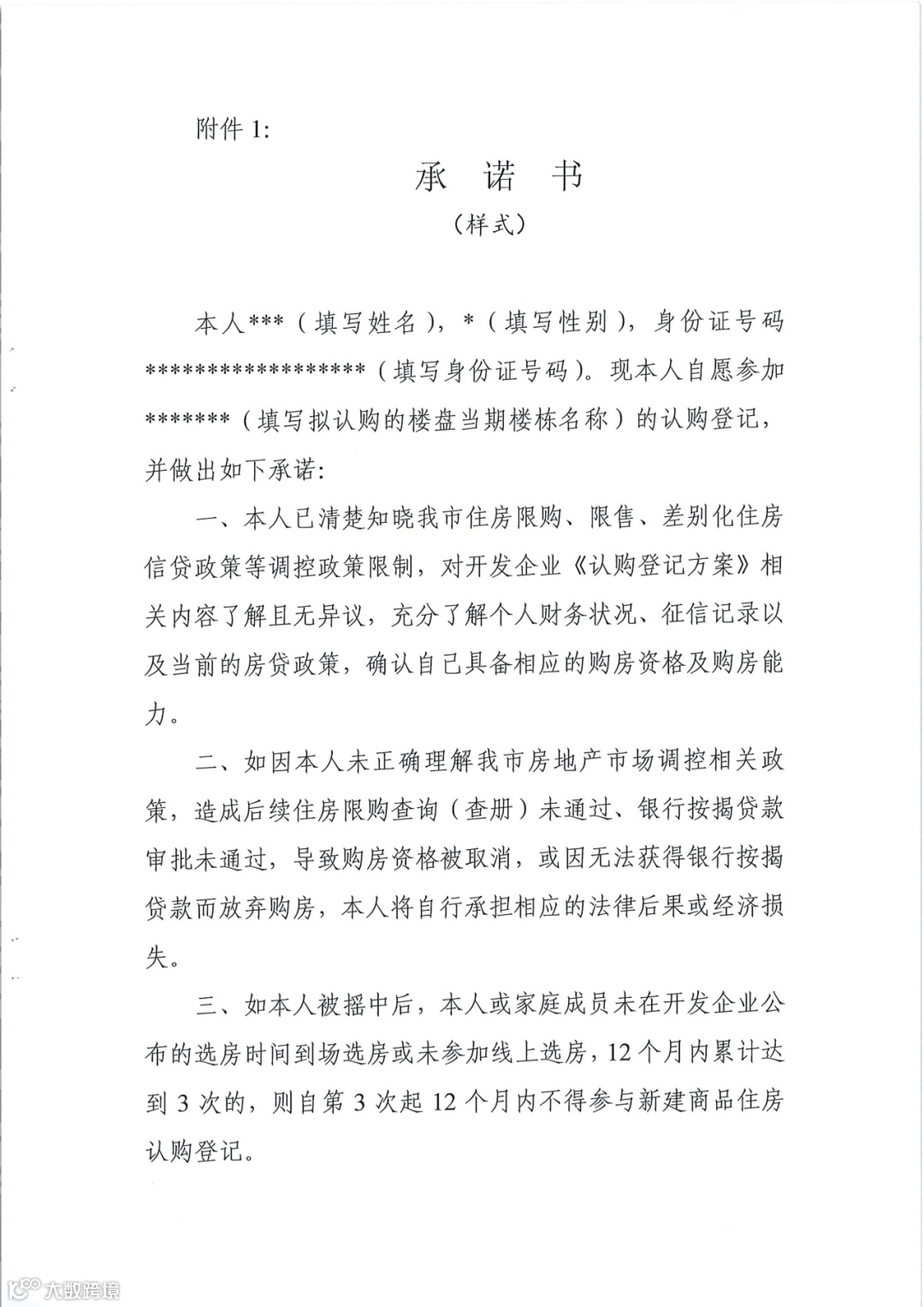 3、直接公证摇号选房:初步审查的购房人人数大于当期可售房源数的,开发企业可要求购房人到开发企业委托的银行办理诚意金冻结手续,诚意金金额最高不超过本批次拟销售房源总价最低一套的20%。