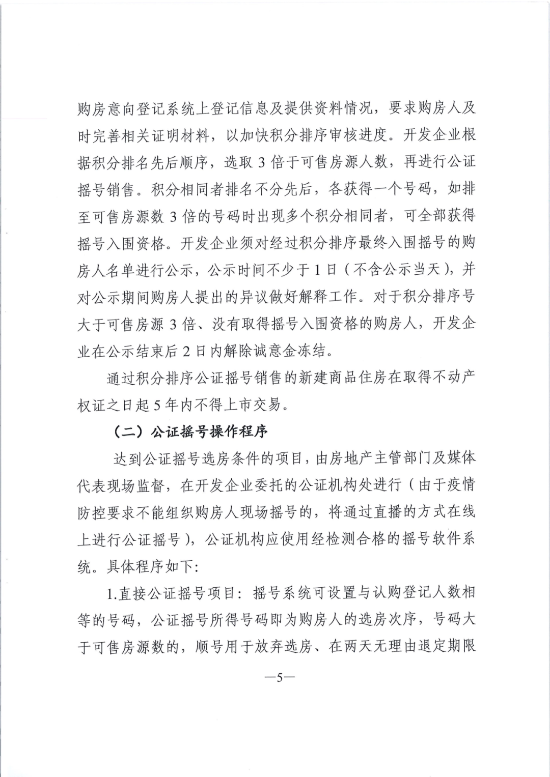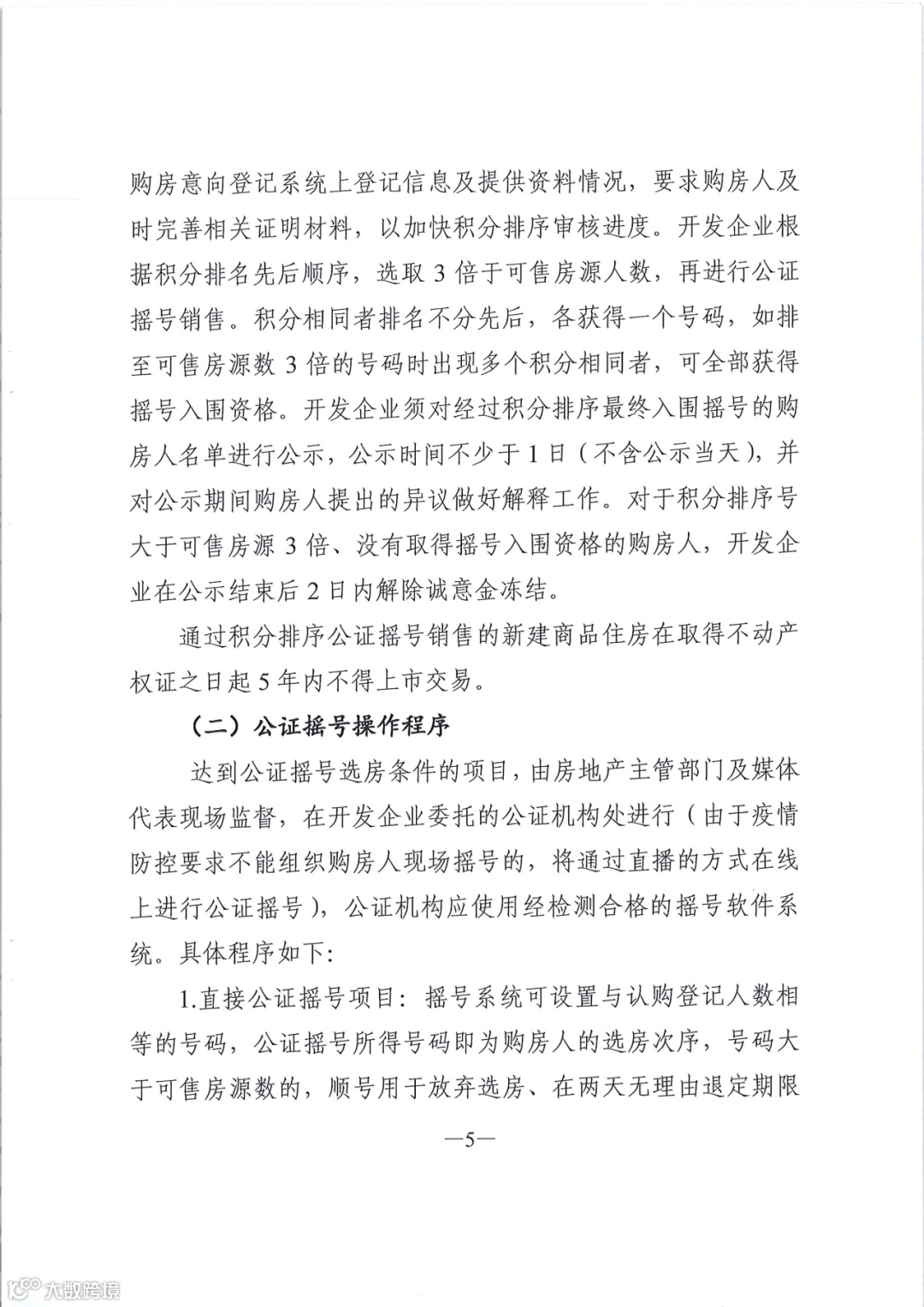 通过积分排序公证摇号销售的新建商品住房在取得不动产权证之日起5年内不得上市交易。