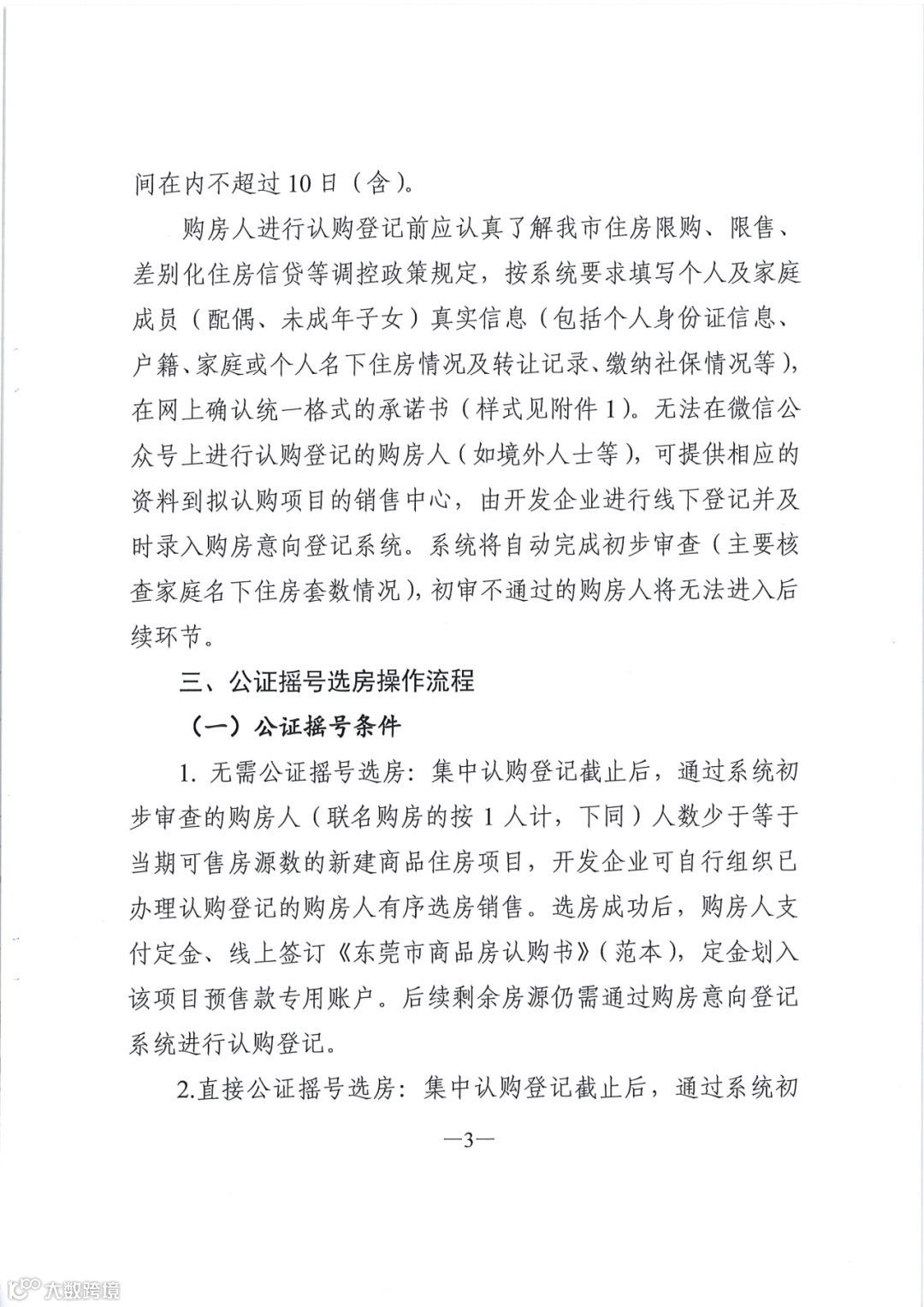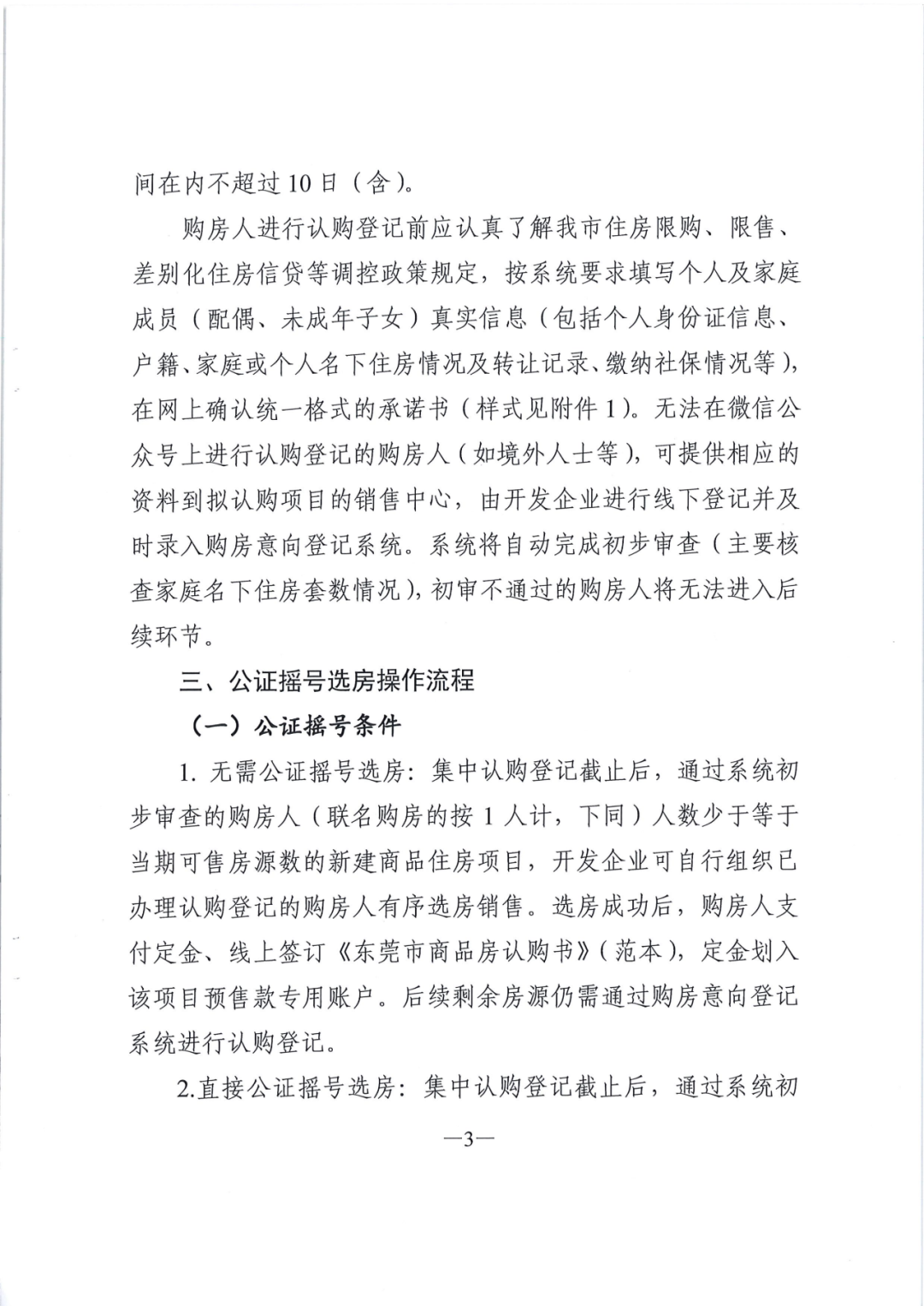 2、无需公证摇号选房:初步审查的购房人(联名购房的按1人计,下同)人数少于等于当期可售房源数的新建商品住房项目,开发企业可自行组织已办理认购登记的购房人有序选房销售。