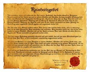 这部法律就是《纯净法》Reinheitsgebot。直到今天许多啤酒瓶上还骄傲地标明“此啤酒严格按照1516年纯净法酿制”。《纯净法》指的是公元1516年巴伐利亚大公威廉四世颁布的法律,规定只许用大麦、啤酒花和水制作啤酒,任何香料或者成分都不允许用于啤酒酿制。这条法律成了当今世界上最古老的一条关于食品和饮料的法律。由于当时的人们对啤酒酿制的化学过程并没有认识,所以法律里没有提到酵母。人们以为那是酿制过程中的残渣,酿完了也就扔掉了。