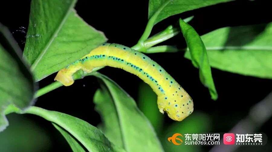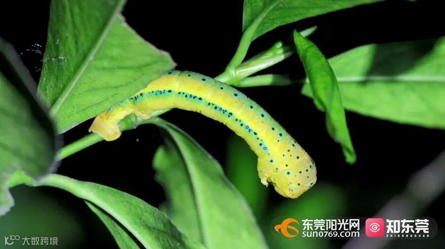 ▲这就是“小青龙”:窄斑凤尾蛱蝶幼虫