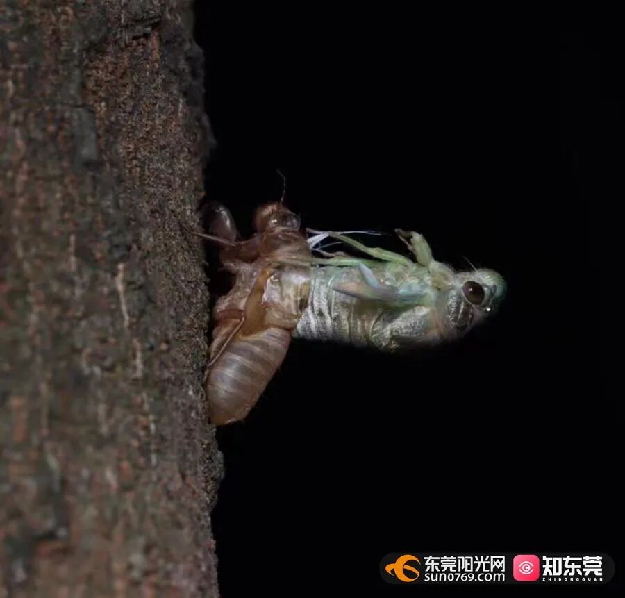 ▲摄制组借助延时摄影手段,拍摄到金蝉脱壳的全过程。
