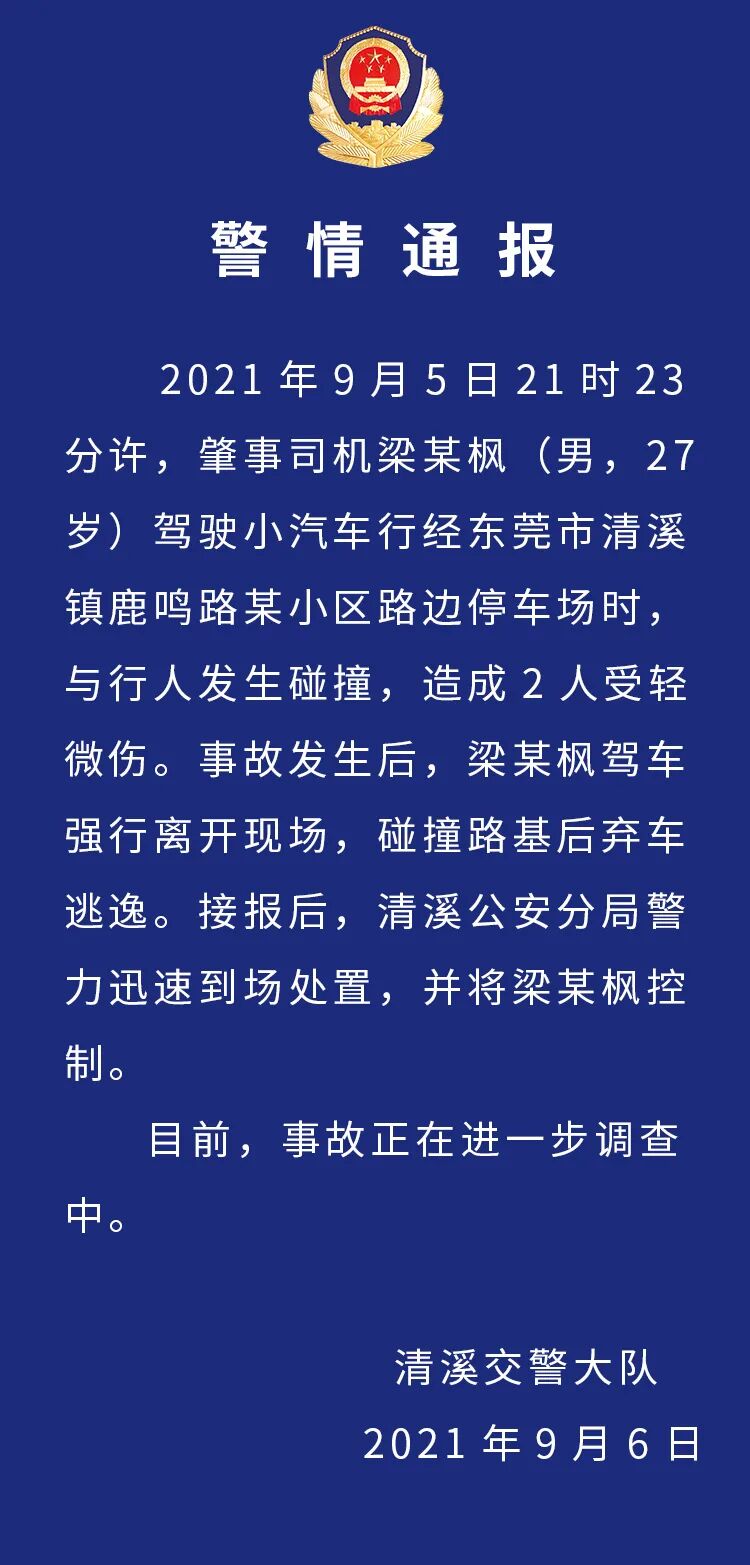 东莞一司机撞伤2人后强行逃逸!通报来了!