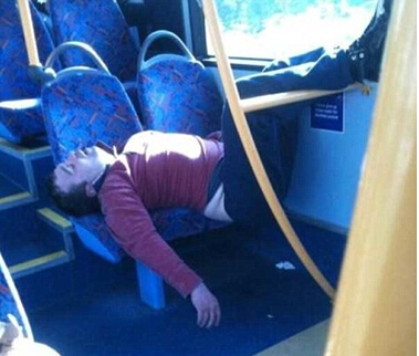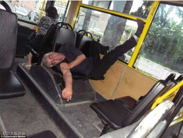 大叔似乎在这两个椅子上睡得挺舒服,但……您的鞋子呢?