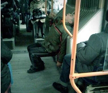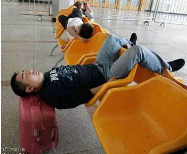 候车室里,来一个高难动作,就叫做产房难产式吧……