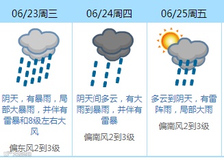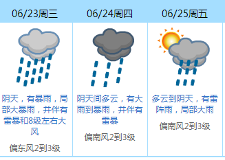 预计我市23日夜间-24日受高空槽及西南季风影响,仍有强雷雨过程,局部伴有8级左右短时大风;