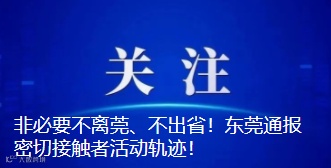 请市民密切关注疫情发展动态,如非必要不离莞、不出省,近期不要前往中高风险地区及疫情发生地区。如必须前往,请务必全程做好个人防护;从上述地区返莞后,要按照我市的相关防控措施执行相应的健康管理。
