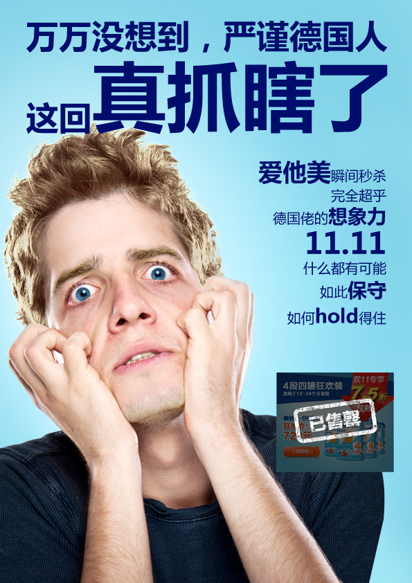 看到那么多麻麻熬着夜却两手空空,德国佬估计也真是焦透了吧!第一次来中国玩双11,就让那么多麻麻扫兴~~诶~~看你们肿么收场!