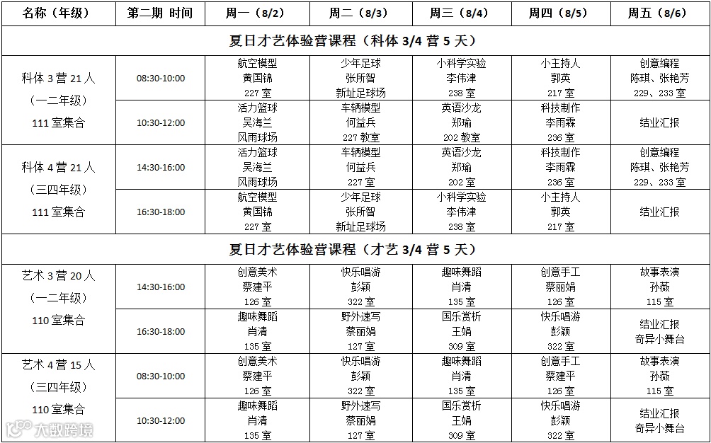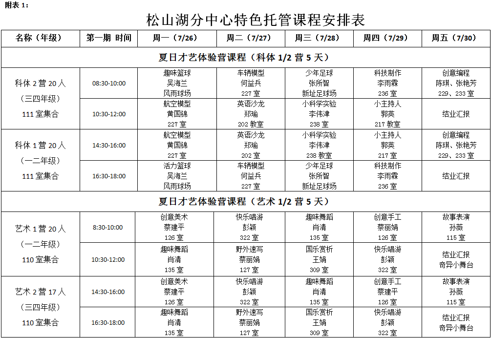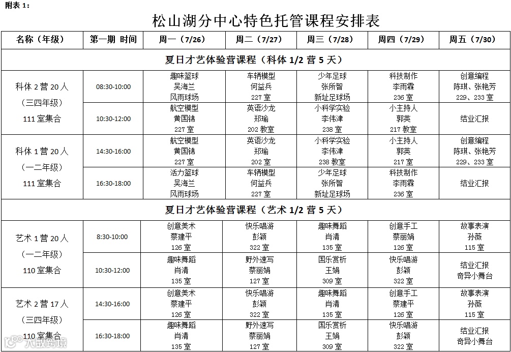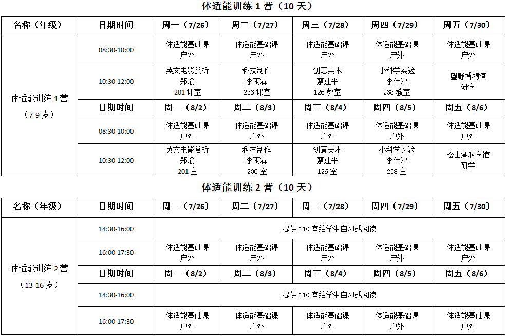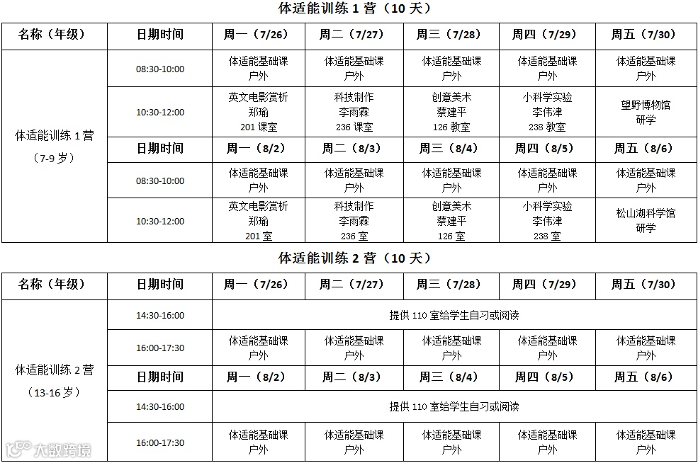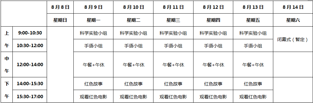 7月26日-8月6日(星期六、日除外),每天上午8:30-12:00,下午2:30-5:30;家长可以根据实际情况,自愿报读其中一期或两期。