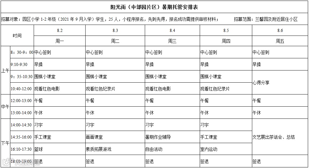 下来,其他8个试点镇街也将陆续出台具体的暑假托管服务试点工作方案。