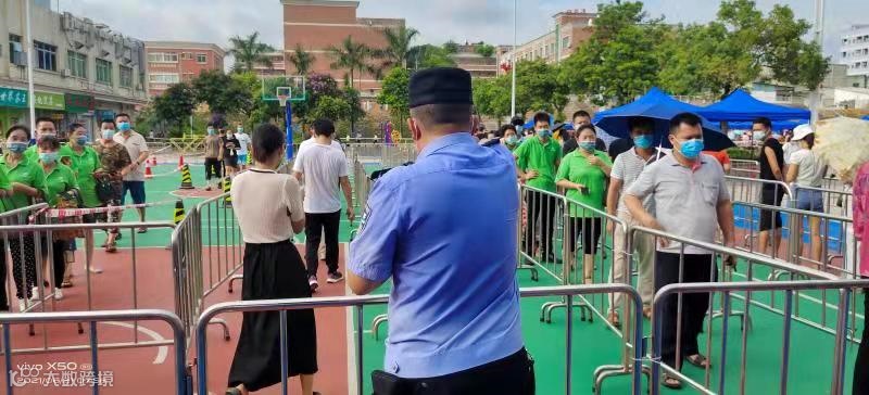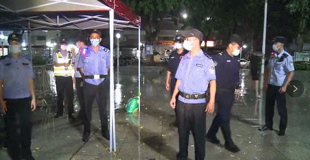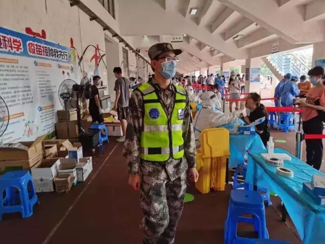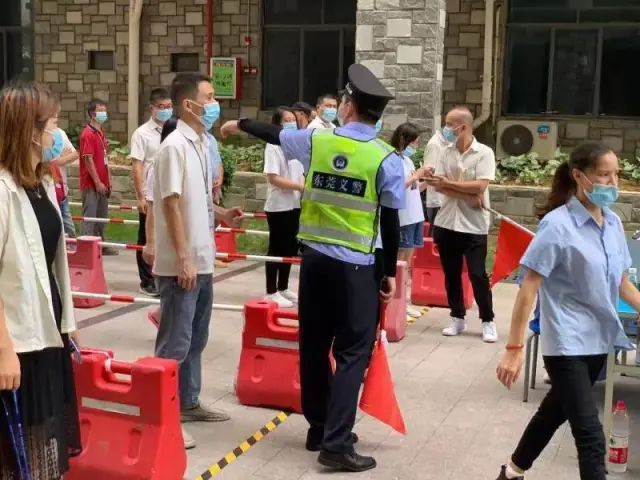 ▲在广东医科大学,大学生义警们自发分成四班,在检测点协助开展巡逻,维护现场秩序。