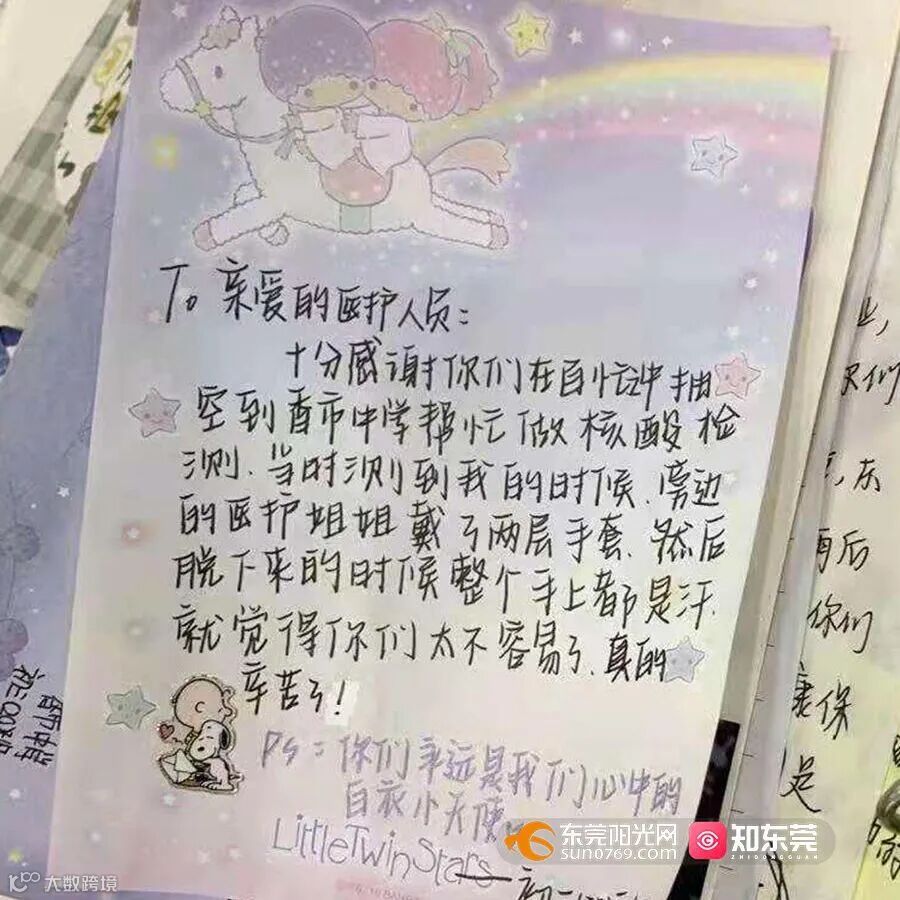 ▲昨天,医护们依然收到许多暖心小纸条,字里行间满满都是每一个东莞人心底深处最真诚的致谢!