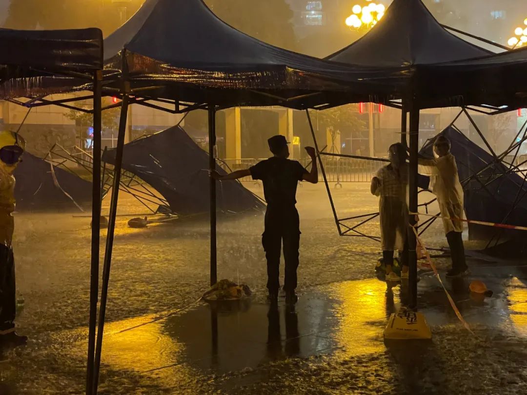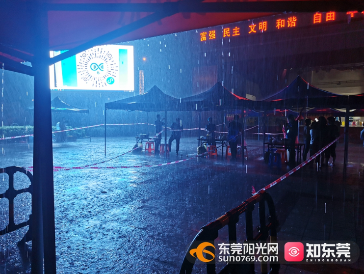 ▲昨晚,东莞突降大雨,狂风骤雨,电闪雷鸣。但,他们依然坚守在一线。