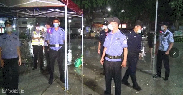 ▲在现场维持秩序的公安队伍队员,身上的汗水湿了又干,干了又湿。