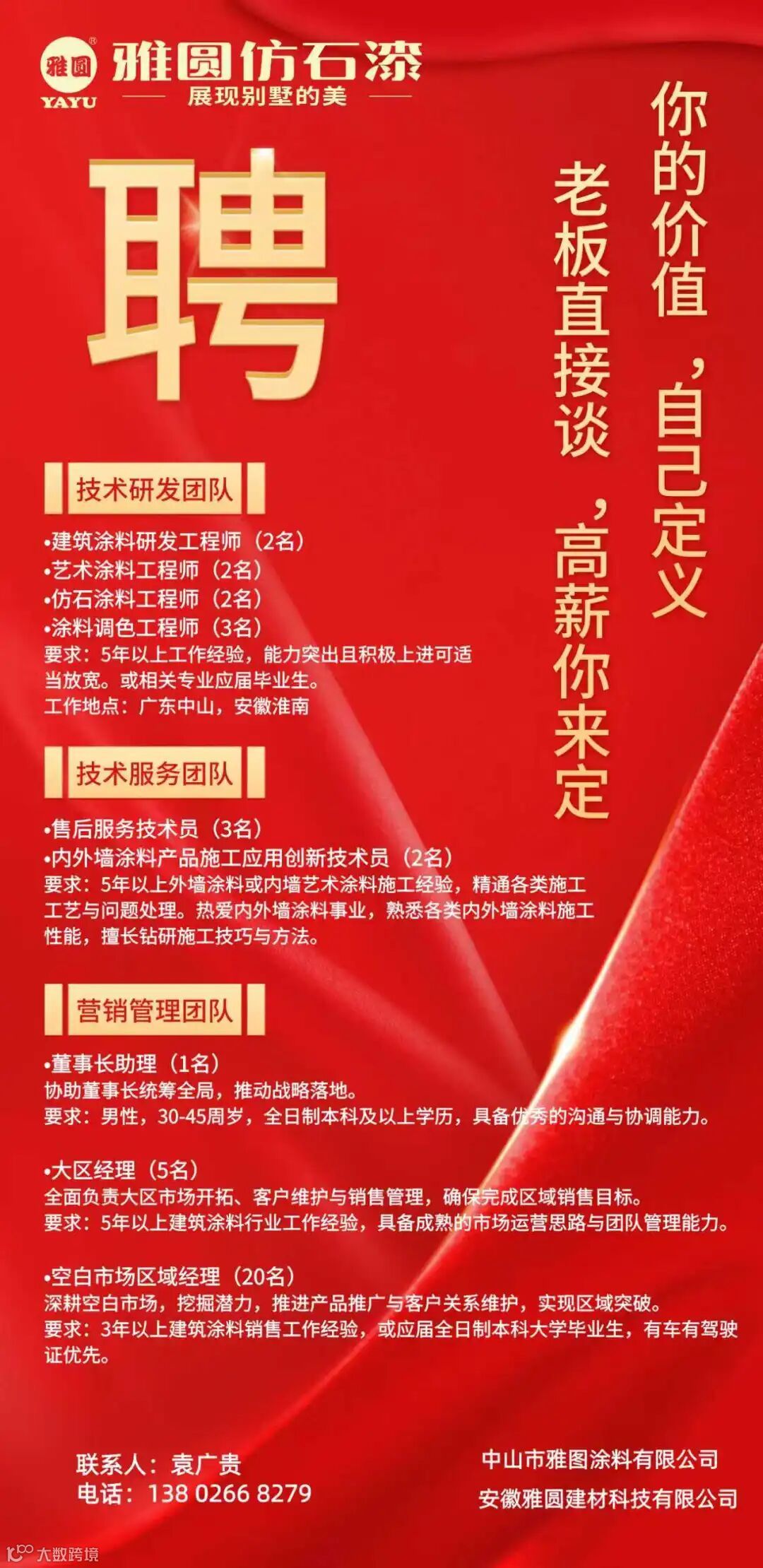 慧正资讯,近日,国内外墙装饰涂料行业优秀企业——雅圆涂料正式发布多项职位招聘信息,面向社会广纳研发、技术、营销等多领域专业人才,为企业持续创新与市场扩张注入新动力。