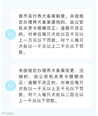 (一)根据《条例》第十一条的规定:“养犬人应当在养犬之日起三十日内,到养犬备案服务机构备案建档。本条例颁布前已经养犬的,应当在本条例颁布施行后六十日内向备案服务机构备案建档”。我市现设定第一批养犬备案服务点共118家,《条例》颁布前已养犬的群众可根据自身实际,在7月30日前选择就近的备案点为您的爱犬备案。