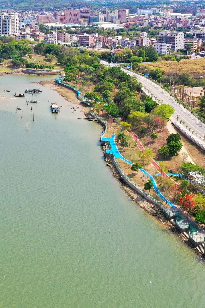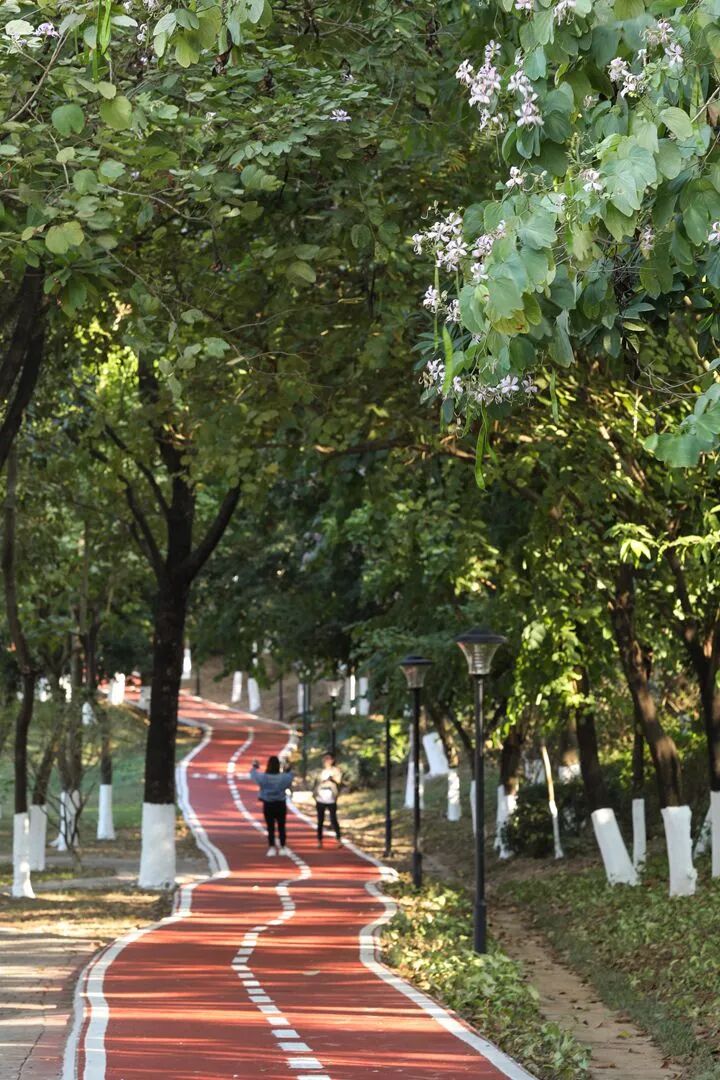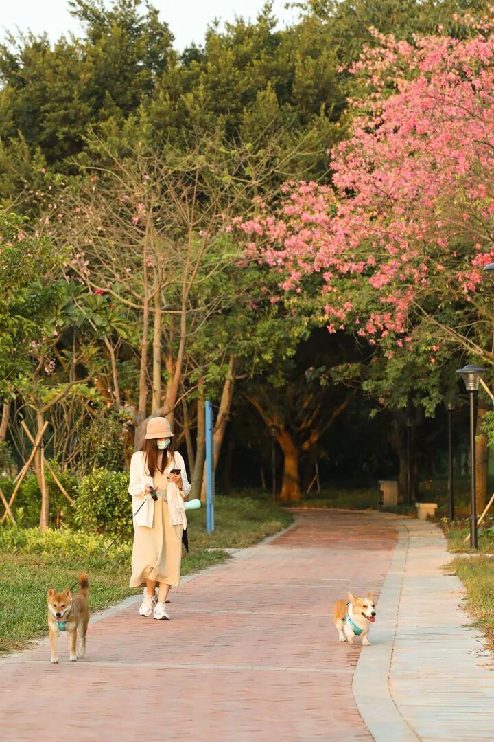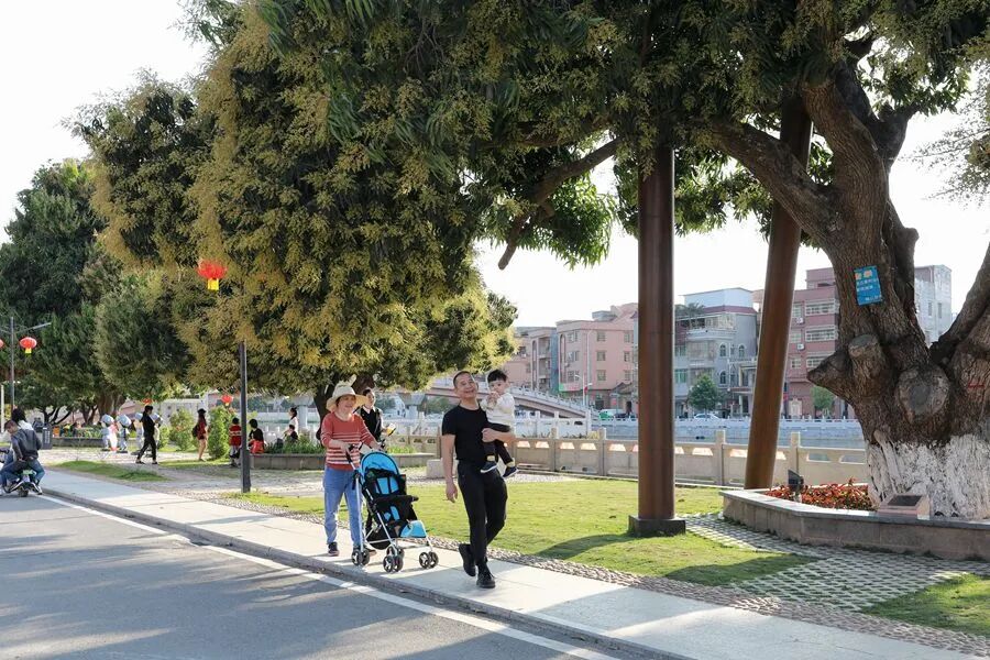 △市民在寮步横丽湖畔悠闲漫步 (图丨钟镜棠)