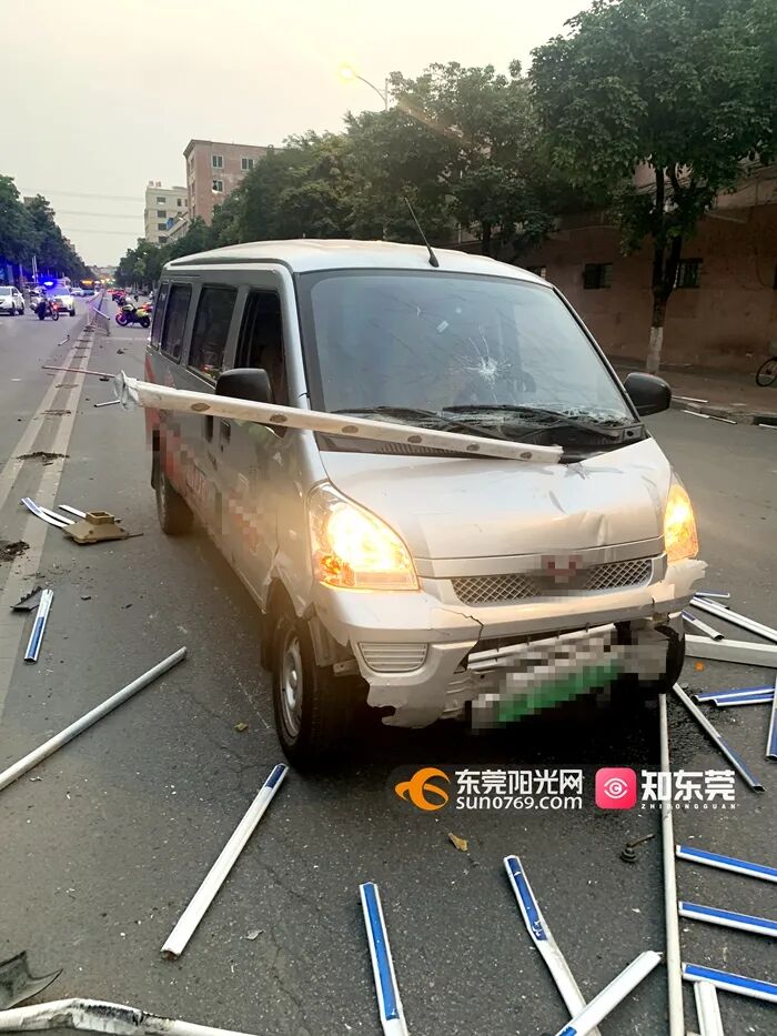 惊!东莞一面包车与大货车“斗气”酿事故 惨遭护栏刺穿