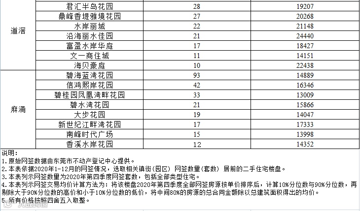 二是2020年第四季度网签交易套数超过10套(含本数)的楼盘,交易套数均包括全部类型住宅。