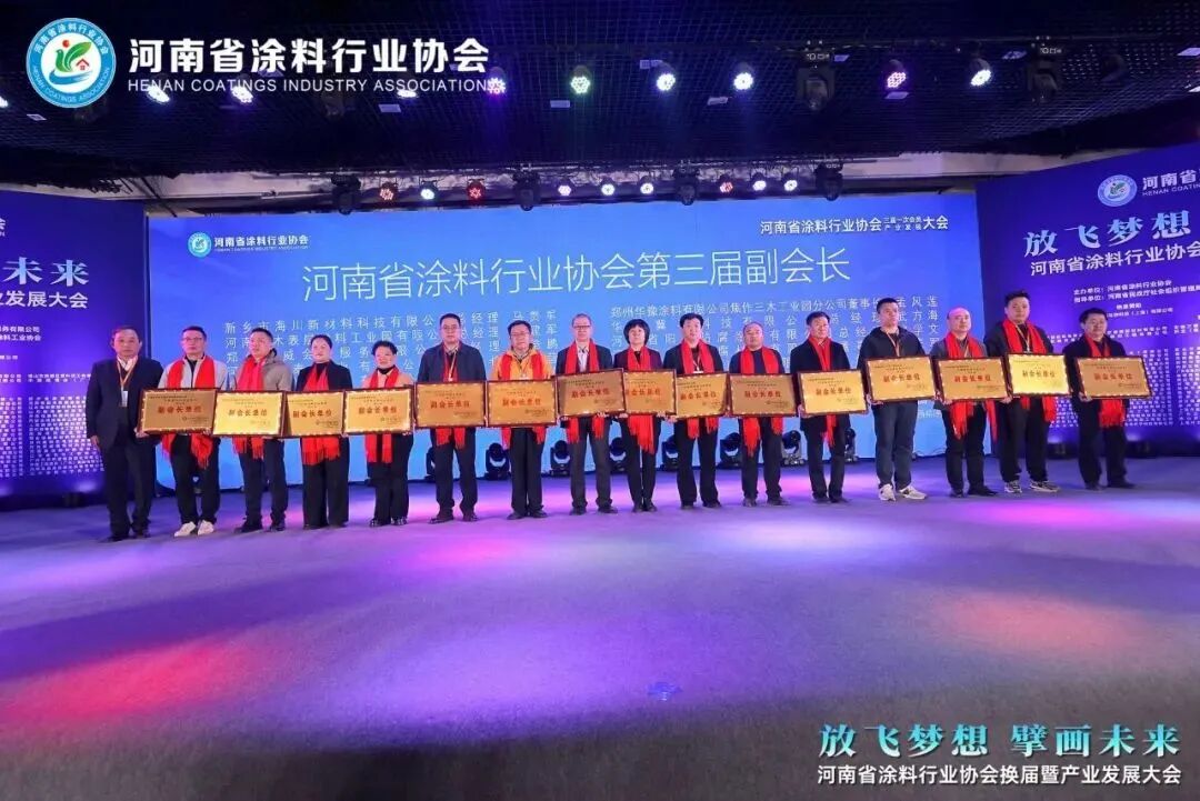 28日上午,协会召开了三届一次会员大会暨产业发展大会。会上,工作人员宣读了河南省涂料行业协会三届一次理事会选举结果:郑州双塔涂料有限公司党委书记谢伟当选为河南省涂料行业协会第三届会长,河南省涂料行业协会秘书处苏全军、郑州市超前涂料有限公司董事长阎运锋、商丘市博大化工有限公司总经理韩文礼、河南省金凤化工有限公司总经理刘帅杰、河南颂源涂料有限公司董事长荆巧玲、郑州拓立造漆有限公司宁陵分公司董事长张新许、洁士美建材科技有限公司总经理赵栋、开封五一涂料有限公司董事长张秋生、河南卧龙涂料科技有限公司总经理李太郎共9人当选为常务副会长,新乡市海川新材料科技有限公司总经理马贵军、河南三木表层材料工业园有限公司总经理王建军、郑州东威会展服务有限公司总经理王浩鹏、河南鑫泰钙业有限公司董事长刘武营、郑州金泰制罐有限公司董事长刘秋珍、广东恒和永盛集团有限公司董事长刘展威、海客迈斯生物科技(上海)有限公司总经理邹亮忠、河南金港节能建材有限公司总经理张国辉郑州华豫涂料有限公司焦作三木工业园分公司董事长孟风莲、华腾冀春科技有限公司总经理武方海、河南省阳光防腐涂装有限公司总经理姚学文、河南省长陵防腐材料有限公司董事长郜庆军、立邦涂料(河南)有限公司总经理徐平、双塔涂料科技有限公司总经理徐祥麟、南召县嘉诚矿业有限公司总经理廉丽、河南兰堡湾涂料科技有限公司总经理魏国强共16人当选为副会长,郑州佳诺实业有限公司总经理于洪、安阳市海顺涂料有限公司总经理王岳洋、开封夸克新材料有限公司董事长卢桂峰、河南鼎之润化工有限公司总经理刘飞、河南颍川新材料股份有限公司总经理芦亚楠、郑州恒彩丽石新型材料有限公司董事长李炎炎、郑州昌之宇贸易有限公司总经理李海宾、郑州联钛化工有限公司董事长张勇、获嘉县先进制造业开发区管理委员会企业服务局副局长周风光、江苏欧摩德新材料有限公司总经理胡胜初、郑州好上好梦蝶涂料有限公司总经理胡振江、河南中显新材料科技有限公司总经理姜天之、郑州昊石建筑材料有限公司总经理郭香玲、河南南召新广源材料有限公司项目经理徐永华、河南美汇化工有限公司总经理韩海峰、河南省襄恒化工产业园发展有限公司总经理鲁新红、仁新实业发展(信阳)有限公司总经理蒋永明河南立佳涂料有限公司董事长蔡国强共18人当选为常务理事。